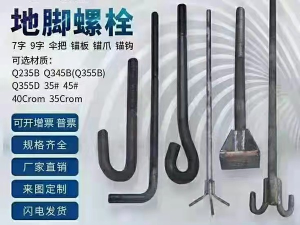 地腳螺栓的用途主要有以下幾方面:固定地腳螺栓又稱為短地腳螺栓,它與基礎澆灌在一起,用來固定沒有強烈振動和沖擊的設備?;顒拥啬_螺栓又稱為長地腳螺栓,是一種可拆卸的地腳螺栓,用于固定工作有強烈振動和沖擊的重型機械設備。脹錨地腳螺栓往往被用于固定靜置的簡單設備或輔助設備。